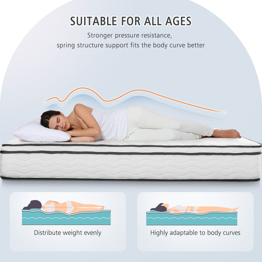 MARNUR 10in Queen Hybrid Mattress with Memory Foam, Medium Firm Support, Mattress in a Box, White