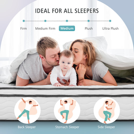 MARNUR 12in Queen Hybrid Mattress with Cooling Gel Memory Foam, Medium Firm Support, Pressure Relief, White