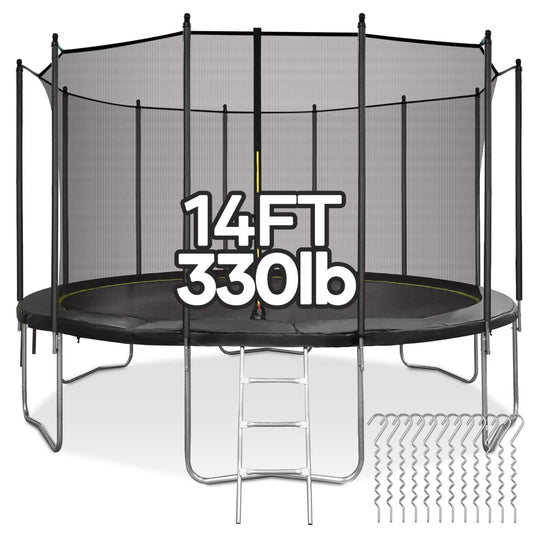 MARNUR 14 FT Trampoline for Kids Max Weight 330 LBS with Ladder, Safety Enclosure, Wind Stakes for Backyards Outdoor