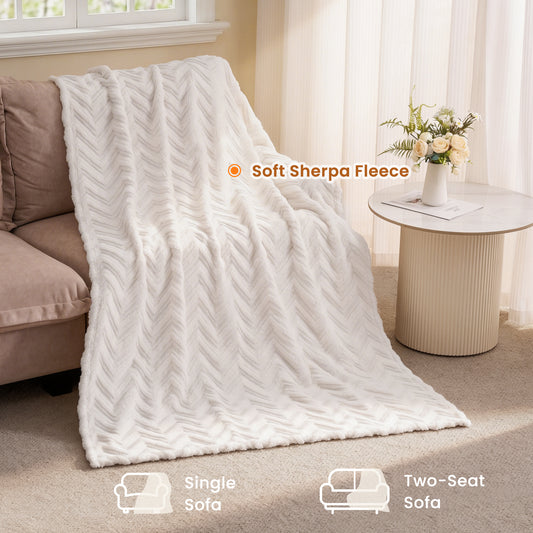 MARNUR Extra Large Throw Blanket 50"x 70", Soft Lightweight Jacquard 340GSM Sherpa Fleece Blanket, Cozy Throw Blanket for Couch, Office, Car, Travel, White