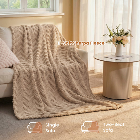 MARNUR Extra Large Throw Blanket 50"x 70", Soft Lightweight Jacquard 340GSM Sherpa Fleece Blanket, Cozy Throw Blanket for Couch, Office, Car, Travel, Light Brown