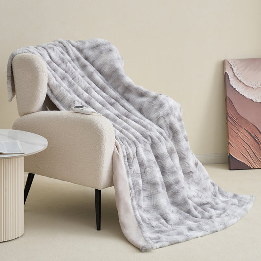 MARNUR Electric Blanket Heated Throw Extra Large Size 50"x72", Soft Faux Fur Heated Blanket with 10 Heating Levels, 4 Hours Timer, ETL Certification, Gray