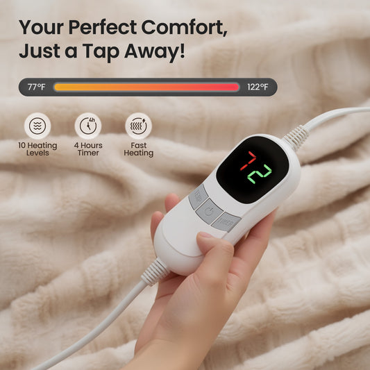 MARNUR Electric Throw Blanket 50"x60", Faux Fur Heated Throw, 6 Heating Levels, 4 Hours Timer - White