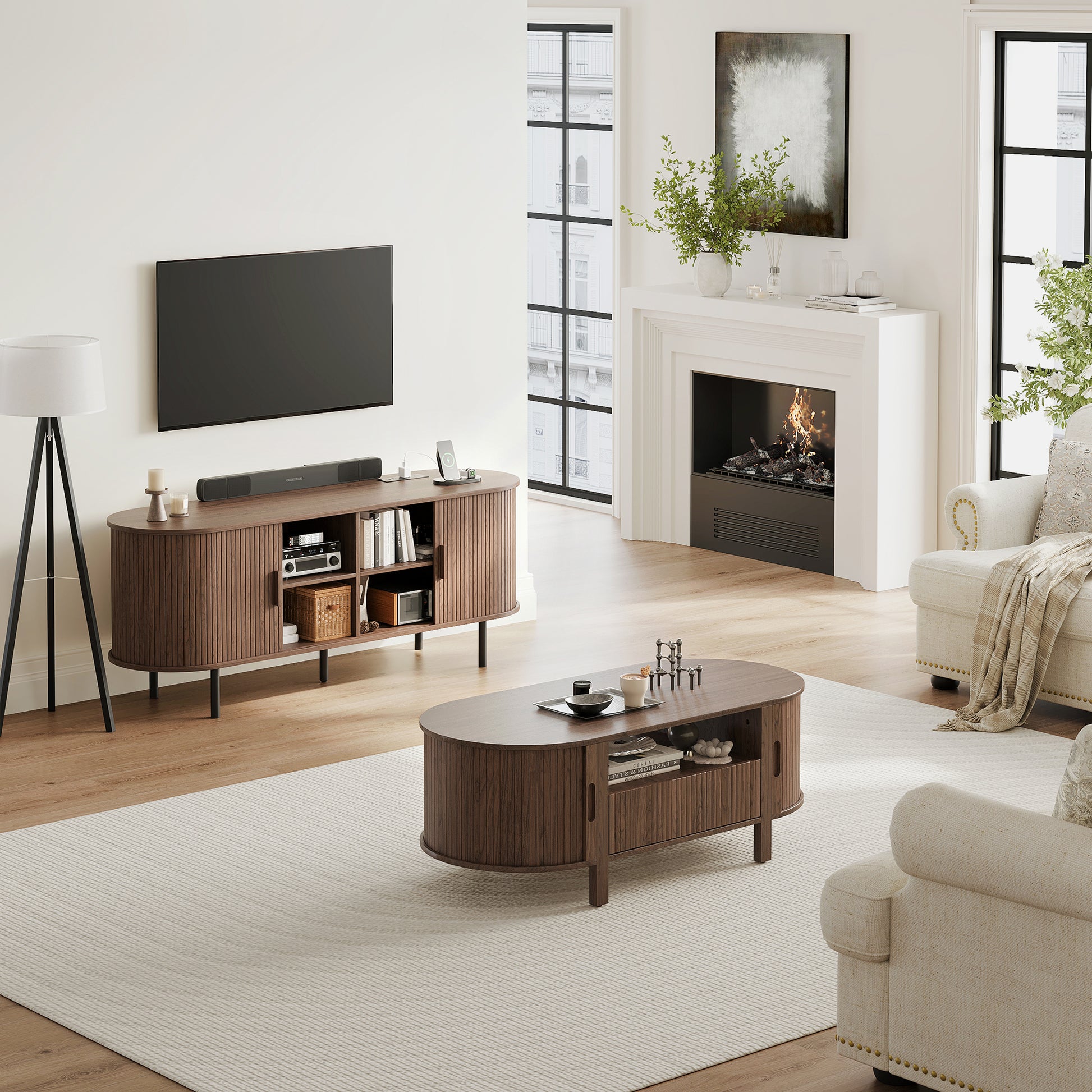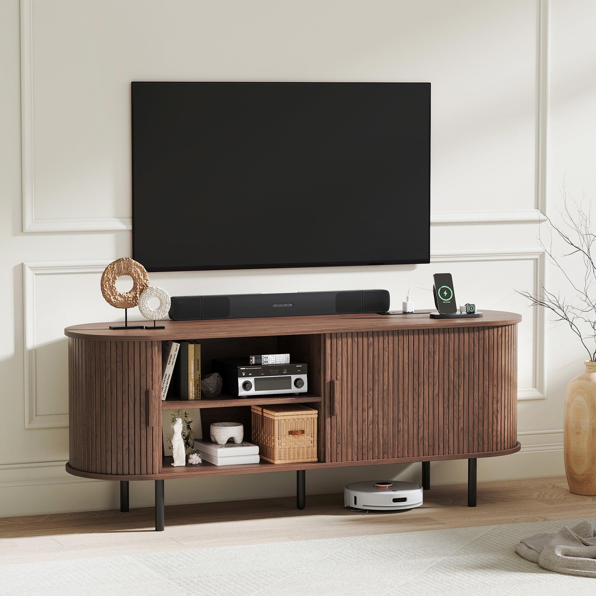 MARNUR 55" TV Stand for 60" TV, Wood Entertainment Center with Storage and Shelves, 2 Sliding Tambour Doors, Mid-Century Modern