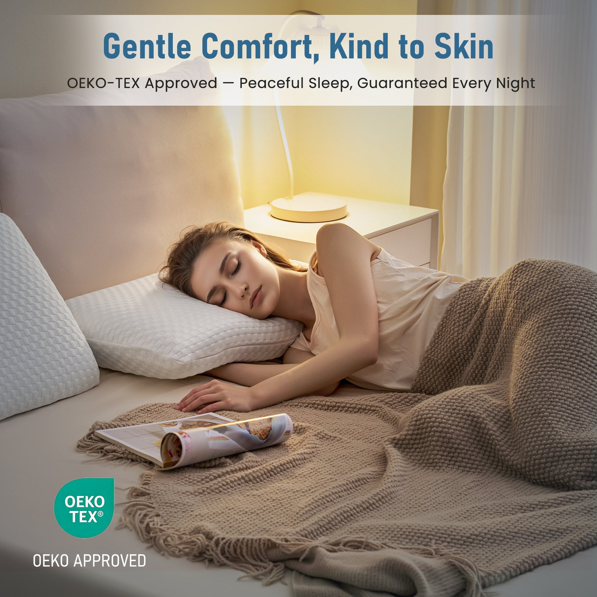 - OEKO-TEX Certified Fabric: Sleep safely with confidence. The pillowcase is OEKO-TEX certified, meeting rigorous standards for health and safety. This bed pillow is crafted with care to support healthier, everyday comfort.