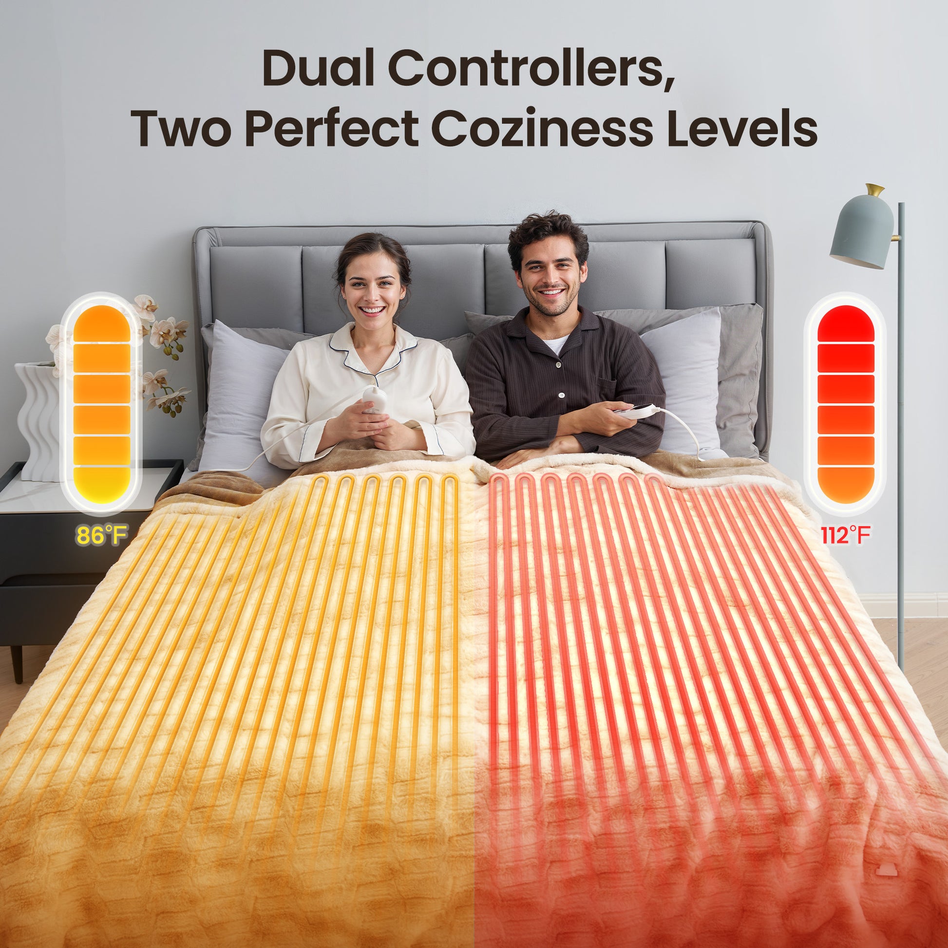 - Dual Controllers for Personalized Comfort: The MARNUR Electric Heated Blanket features dual controllers, allowing each side to be set at different temperatures. Perfect for couples with different warmth preferences—enjoy customized comfort on both sides, whether you're snuggling up or sleeping alone!