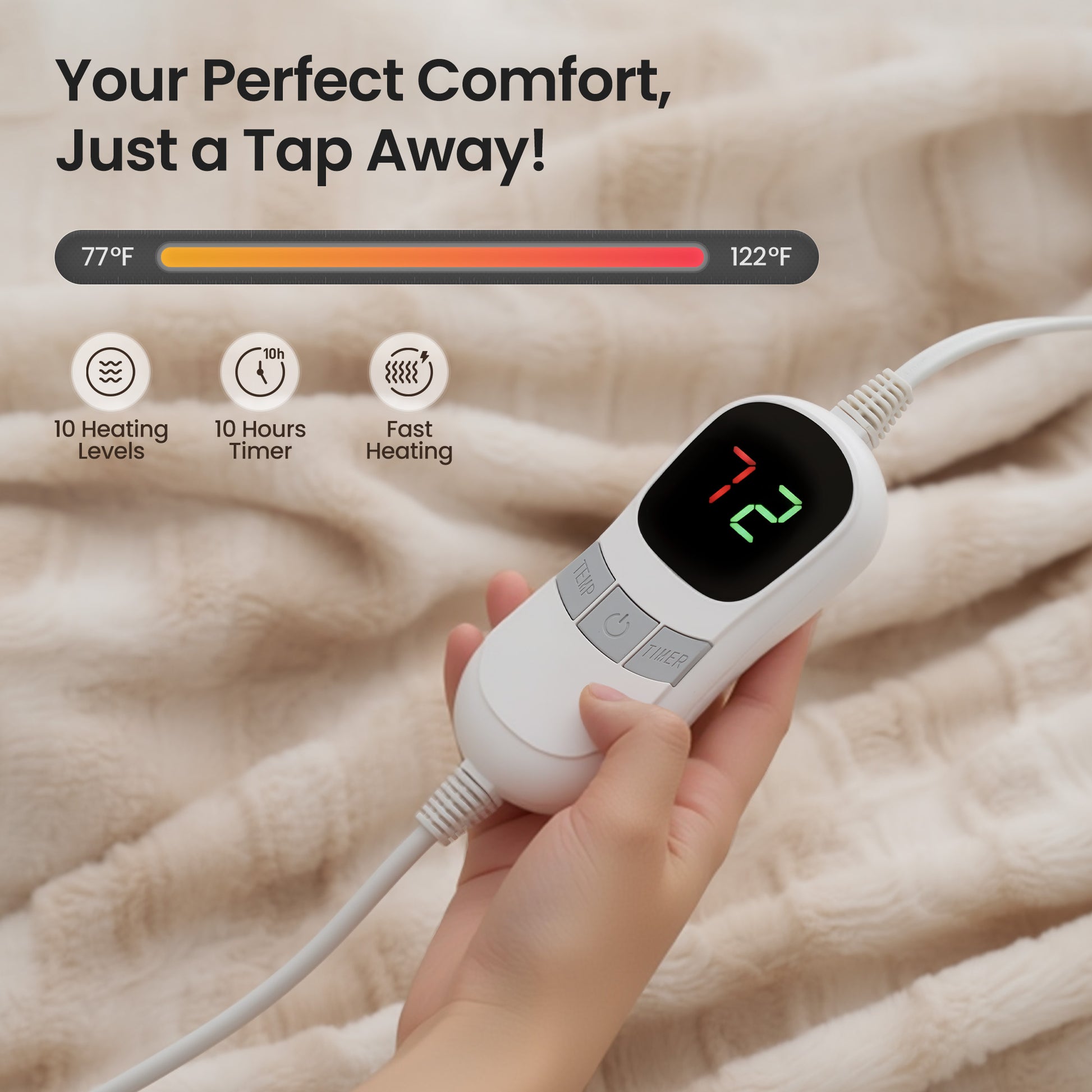 - 10 Heating Levels, 10-Hour Timer: Easily adjust the temperature and timer to fit your personal comfort needs. Enjoy cozy warmth with customizable heat settings and a convenient 10-hour timer for safe, worry-free use.