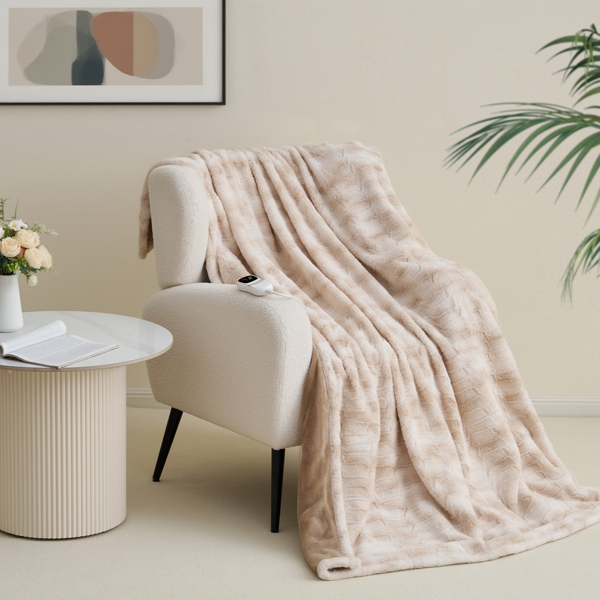 MARNUR Electric Throw Blanket Extra Large Size 50"x72", Soft Faux Fur, 10 Heating Levels, 4 Hours Timer Machine Washable, Khaki