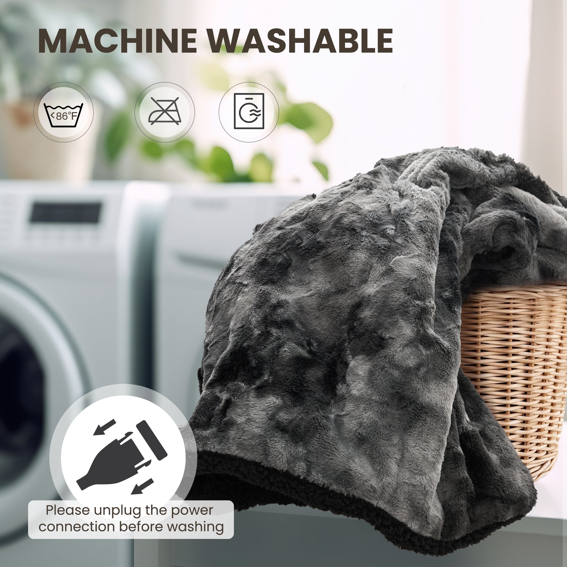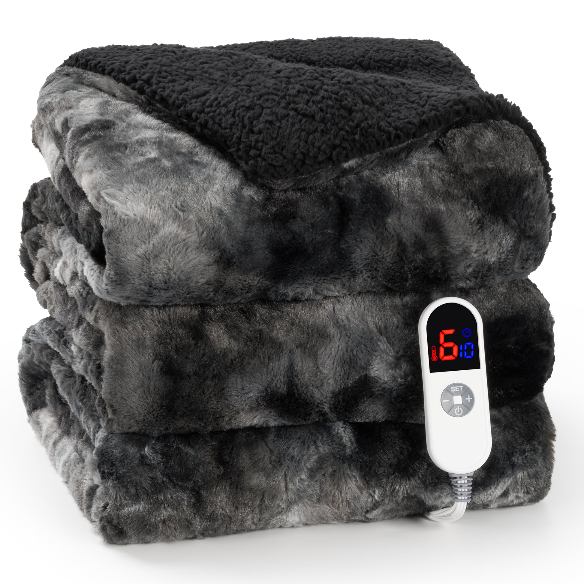 MARNUR Heated Blanket 72"x84" Faux Fur & Sherpa Electric Blanket with 6 Heat Levels, 10H Timer, LED Display, Machine Washable, Tie-Dye Black