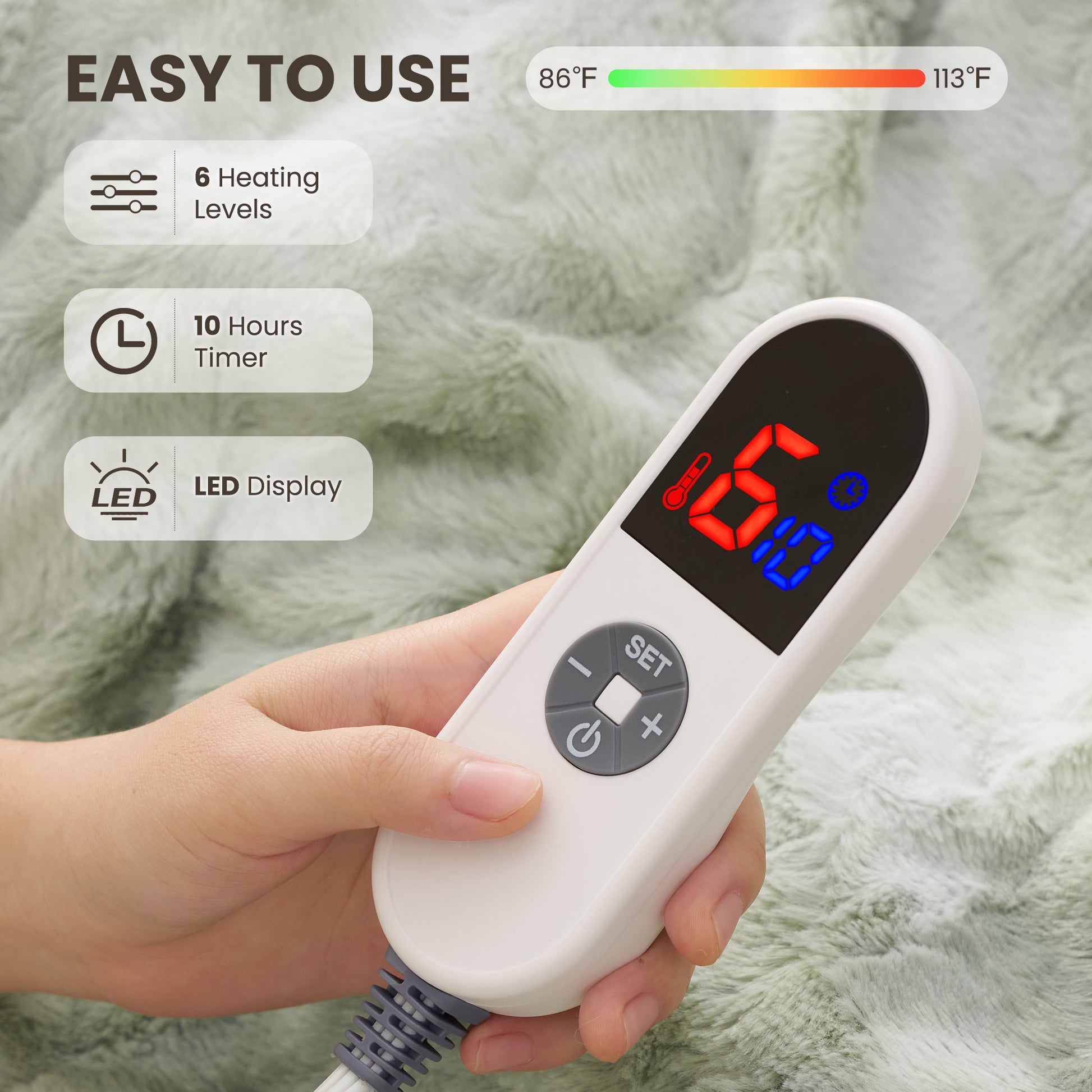 Customize Your Own Warm Safely - MARNUR ETL-certified electric blanket ensures worry-free warmth with 6 customizable heat levels, a 10-hour timer, and overheat protection. The LED digital controller offers precise and easy temperature level adjustment at a glance.