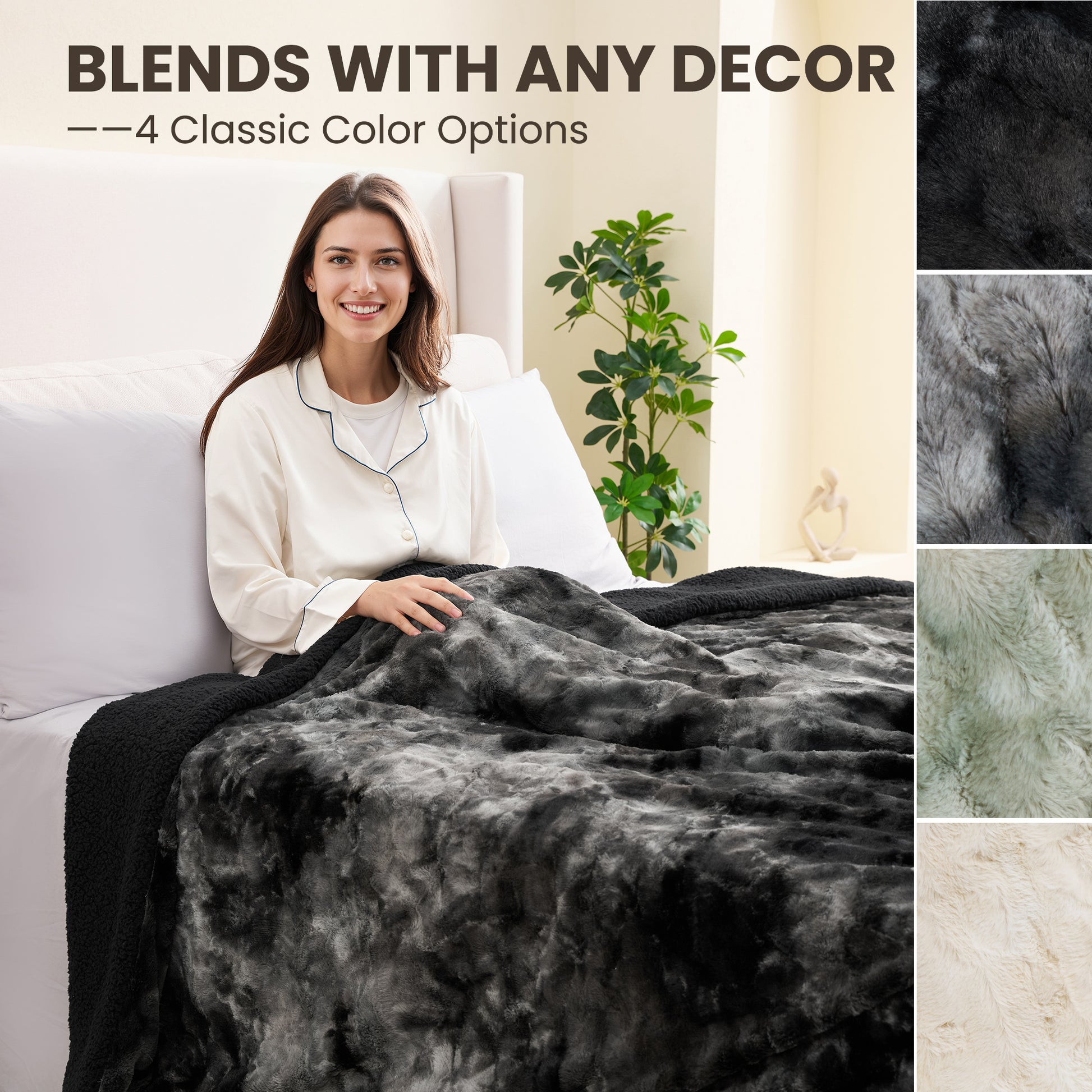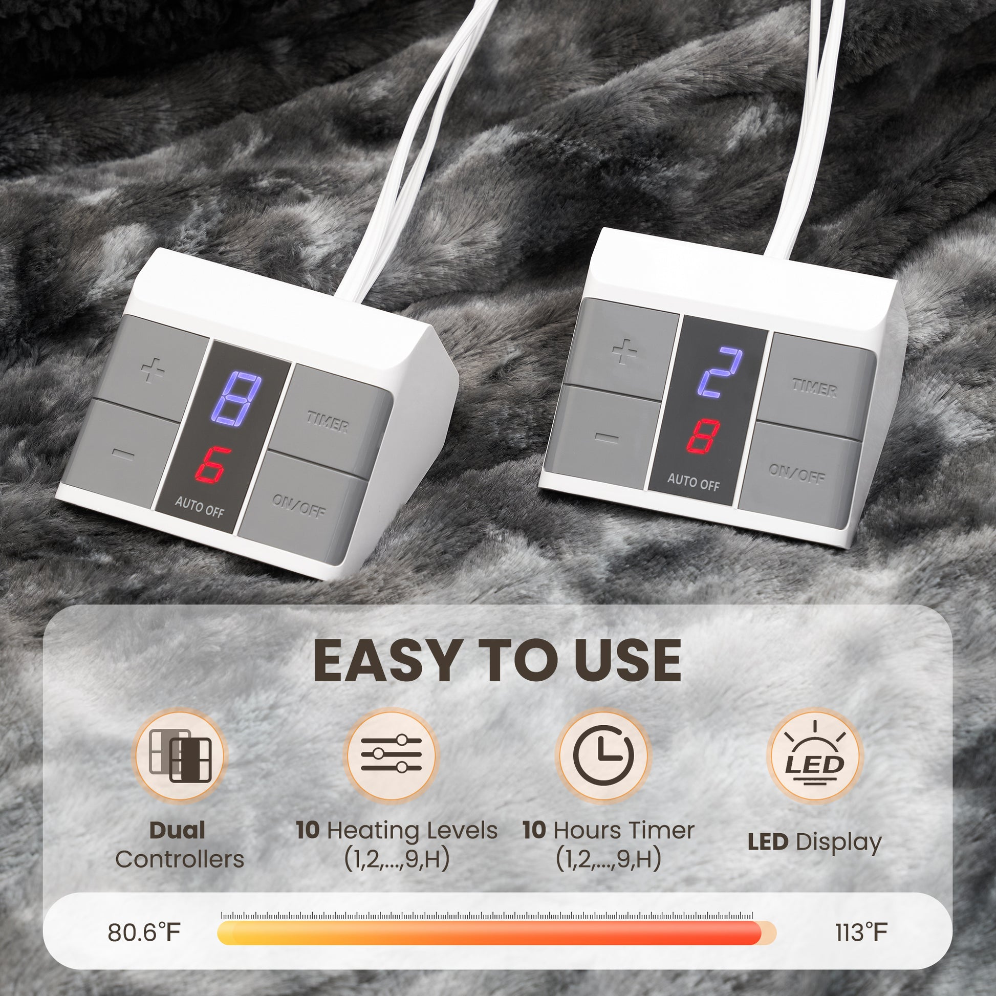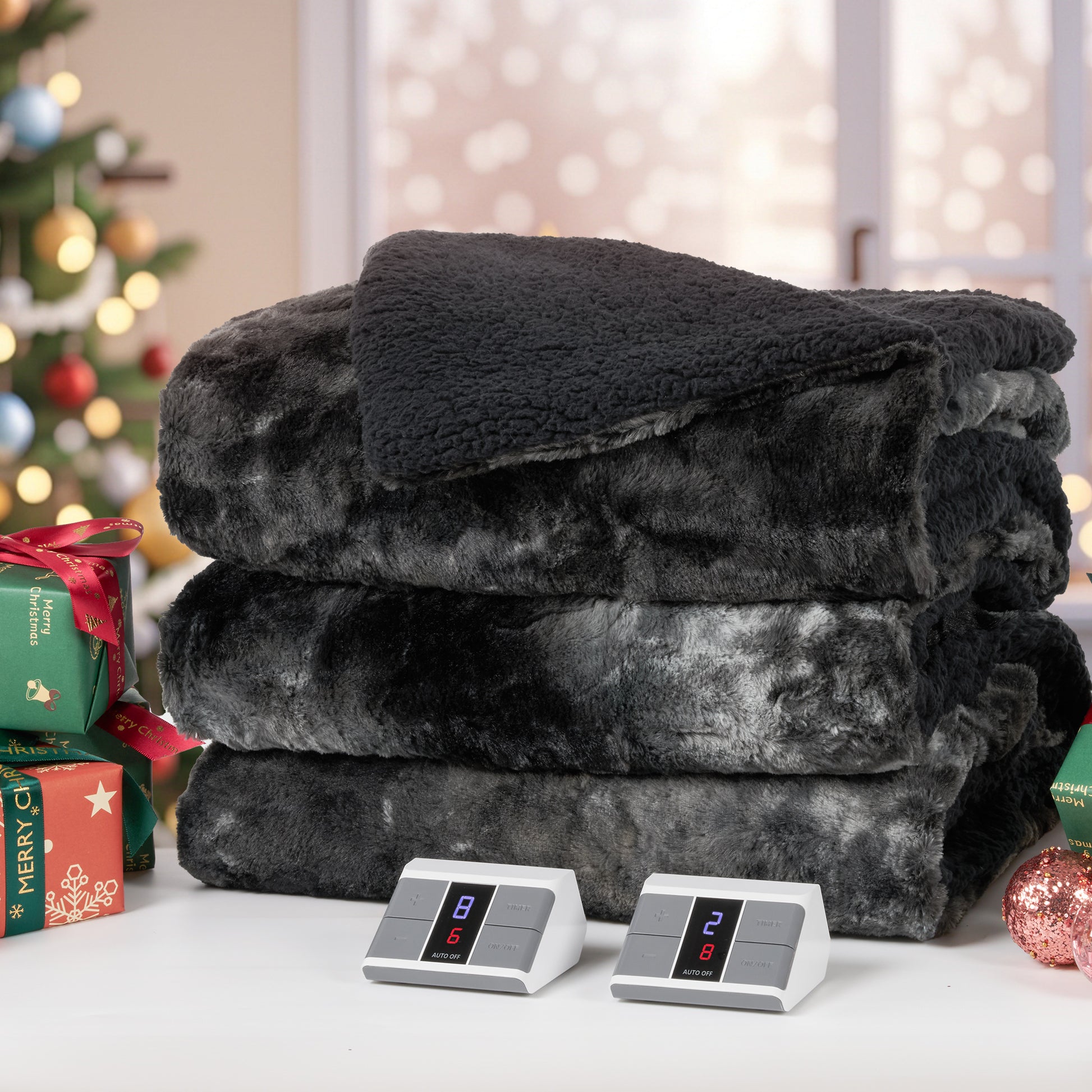 Made from cozy faux fur and plush sherpa, this queen-size electric blanket offers cloud-like comfort for a relaxing night's sleep. Ideal for staying warm and comfortable during chilly nights.