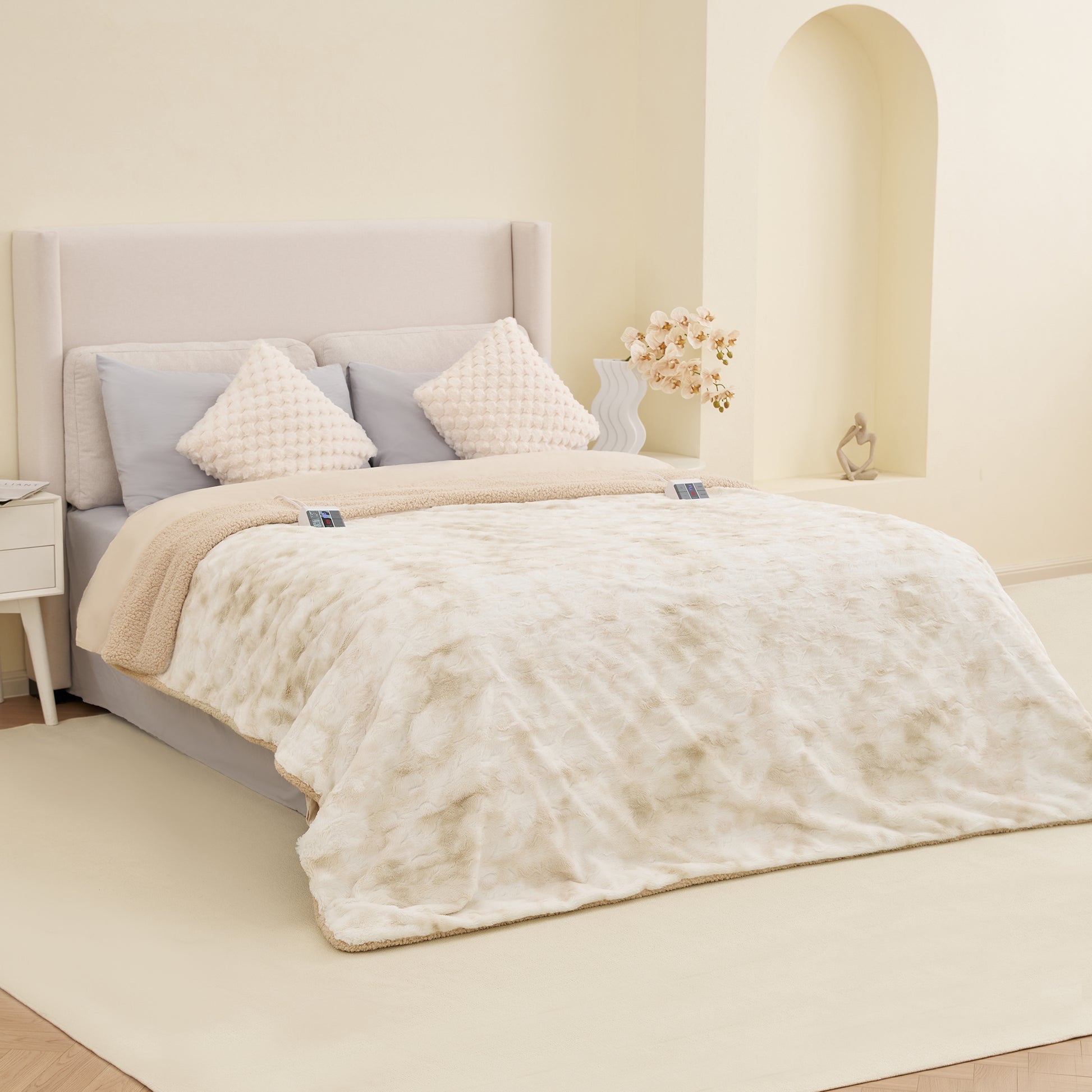Made from cozy faux fur and plush sherpa, this queen-size electric blanket offers cloud-like comfort for a relaxing night's sleep. Ideal for staying warm and comfortable during chilly nights.