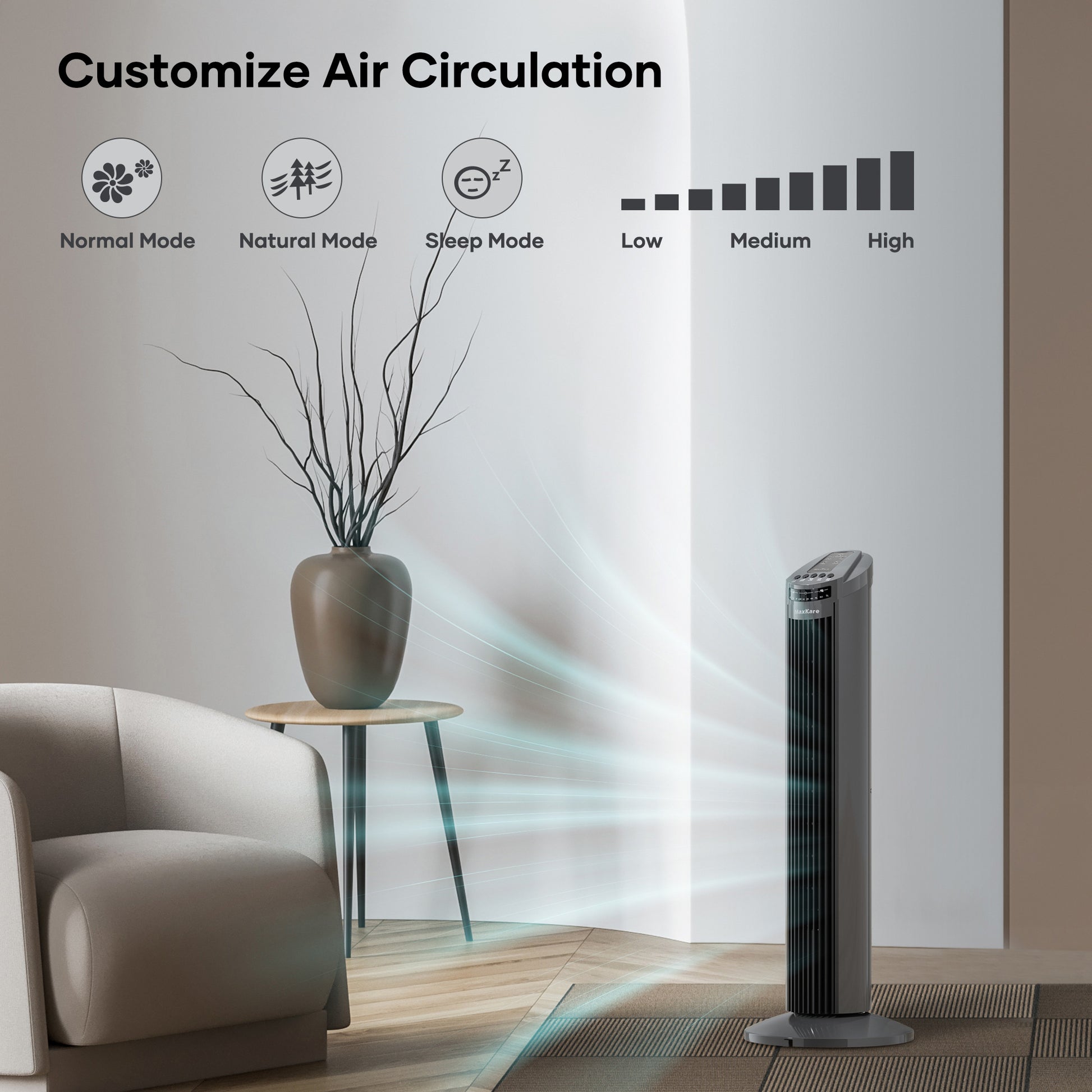 - Quiet Operation Under 60dB - Enjoy powerful airflow without the noise. This tower fan operates below 60 decibels, perfect for bedrooms, nurseries, and quiet workspaces.